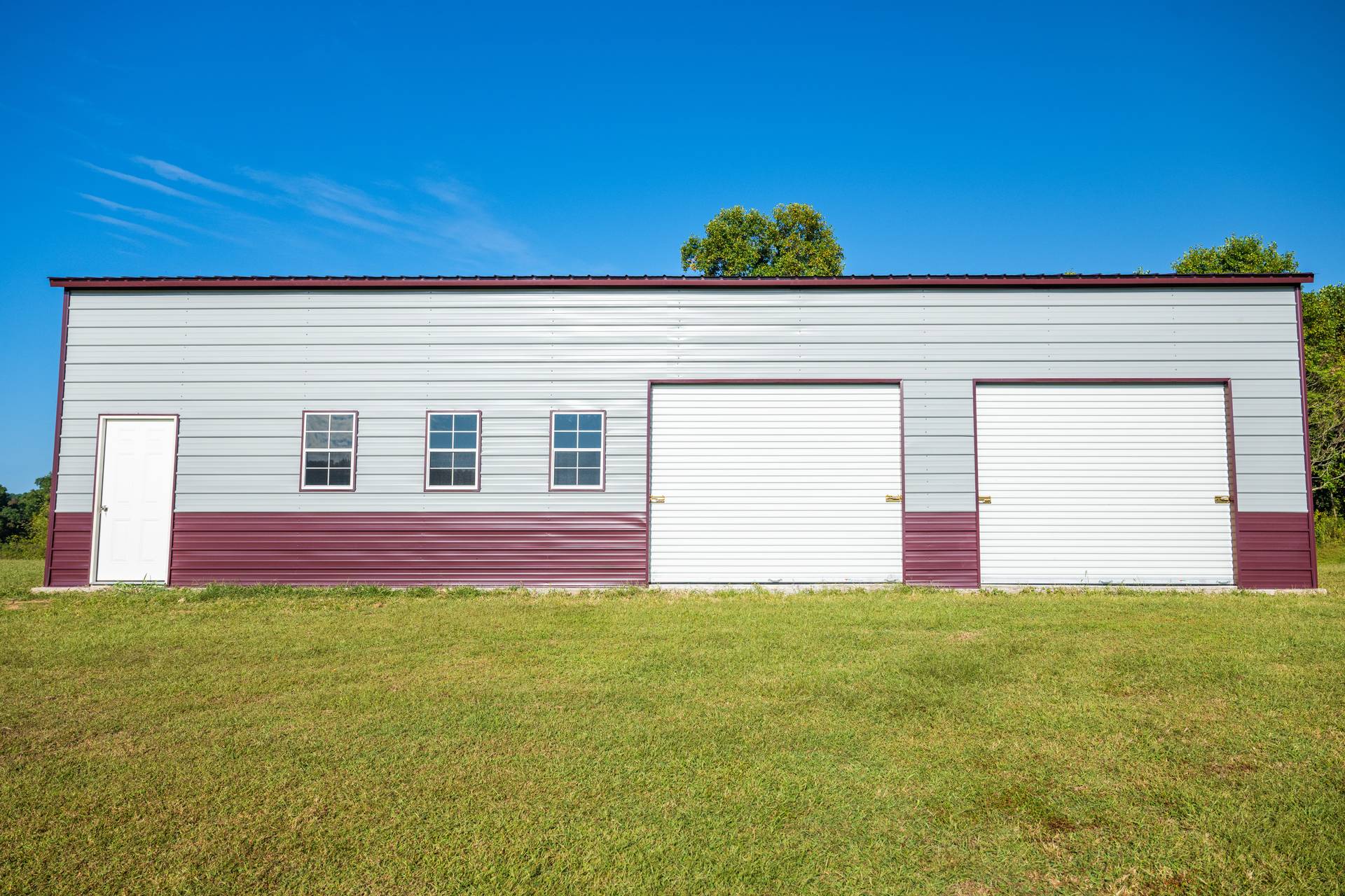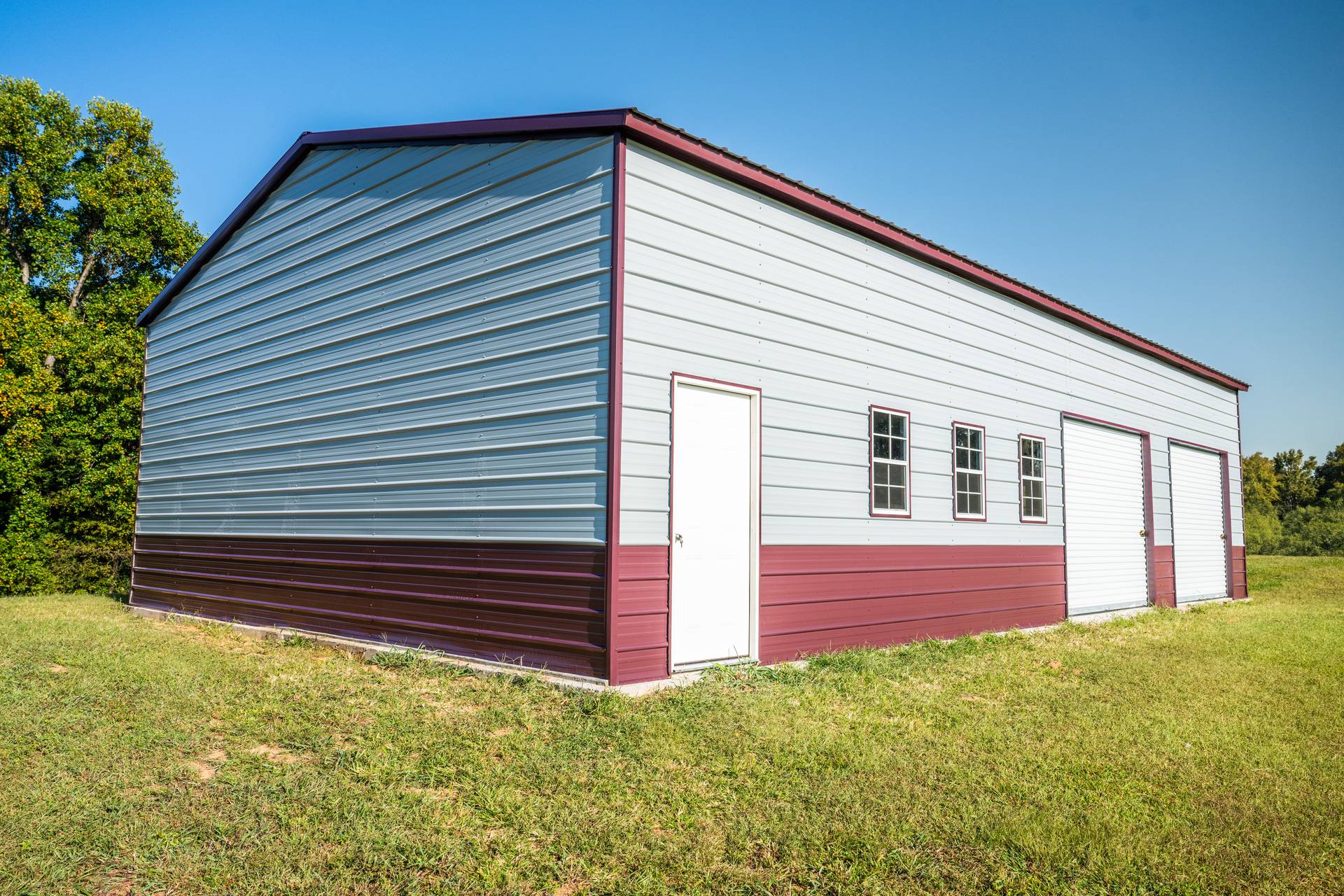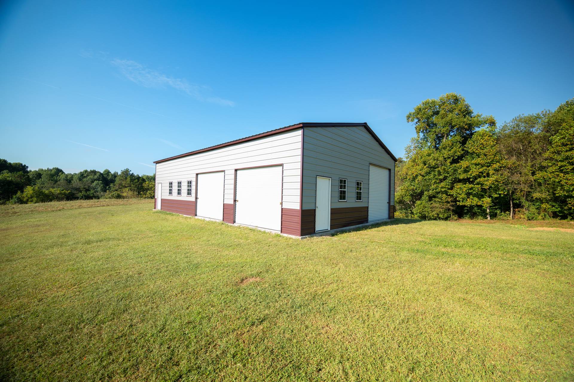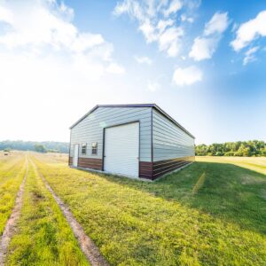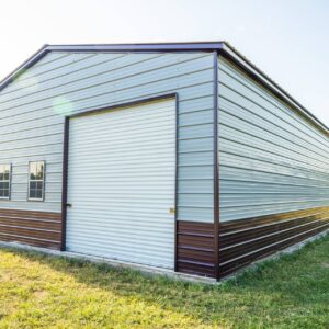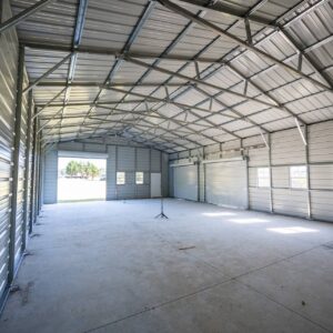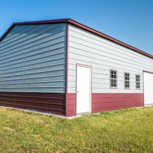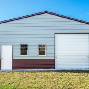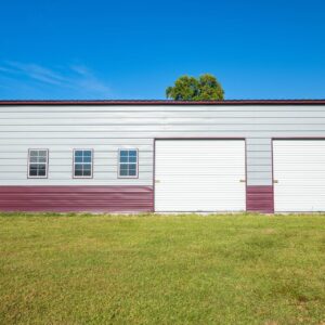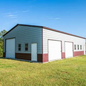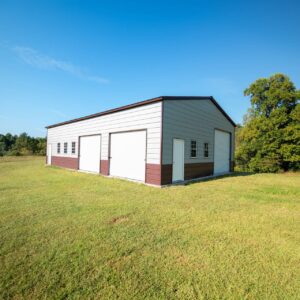 This extra large multi-bay garage is perfect for a workshop, man cave or commercial facility. Measuring in at 1500 sq ft the garage comes equipped with a vertical roof, a 10’x10′ roll up door, two 10’x8′ roll up doors, two walk in doors, and five windows. The building is also customizable and available in multiple no cost color options.